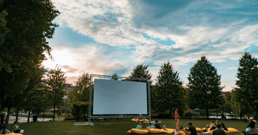 Or, grab an outdoor screen, a projector, and a popular movie (with proper licensing), and encourage people to bring blankets or lawn chairs. Charge a small fee for general admission and offer VIP packages that include snacks, drinks, and a reserved seating area.